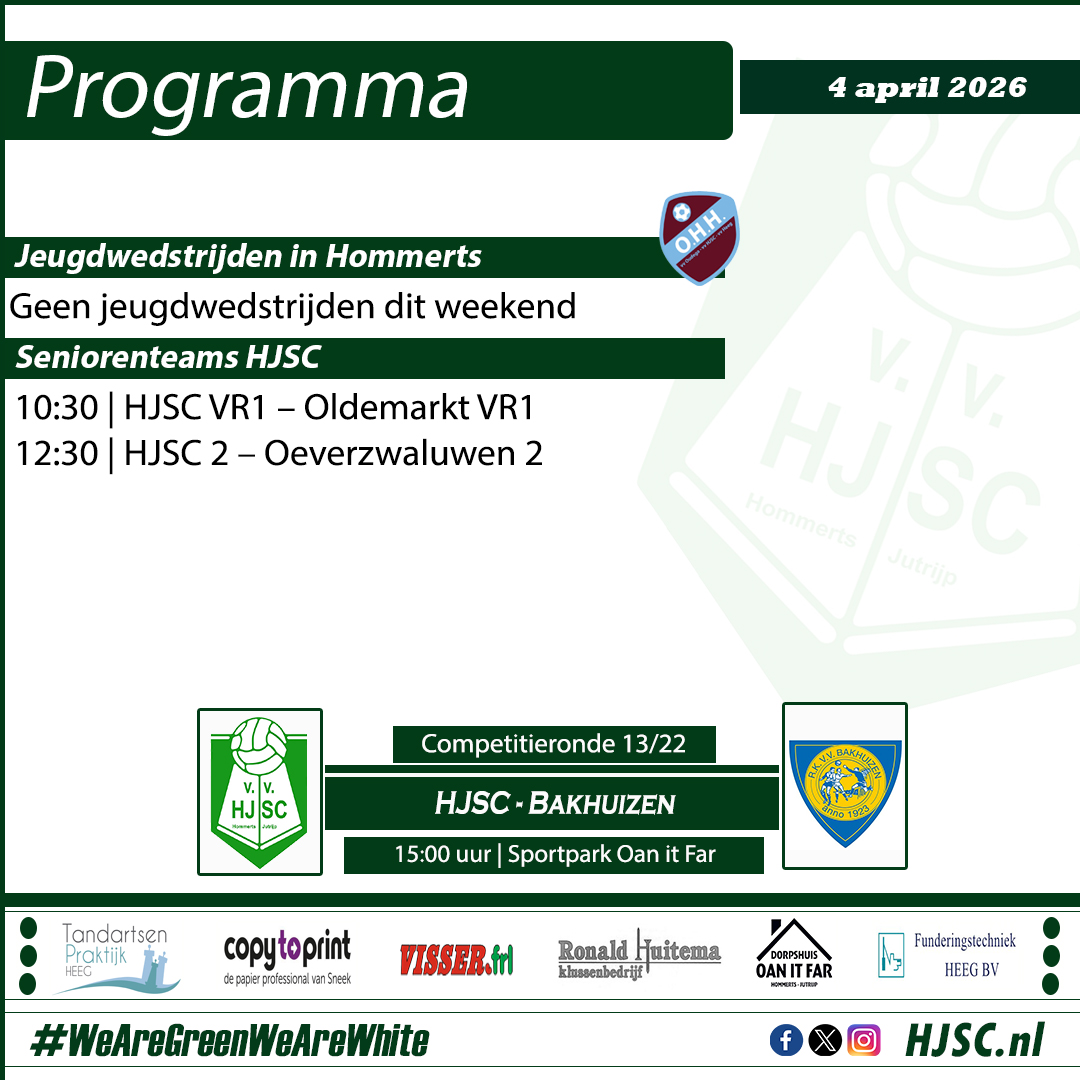 Eerst maar eens focussen op de komende wedstrijden, want die worden allesbehalve eenvoudig. Zaterdag wacht Bakhuizen, een ploeg waar eerder dit seizoen nog van werd verloren. Daarna volgt de derby tegen Woudsend, waar HJSC toen maar nét langs wist te komen. En een week later staat de uitwedstrijd tegen Mulier op het programma, wat ook zeker geen garantie is voor drie punten.