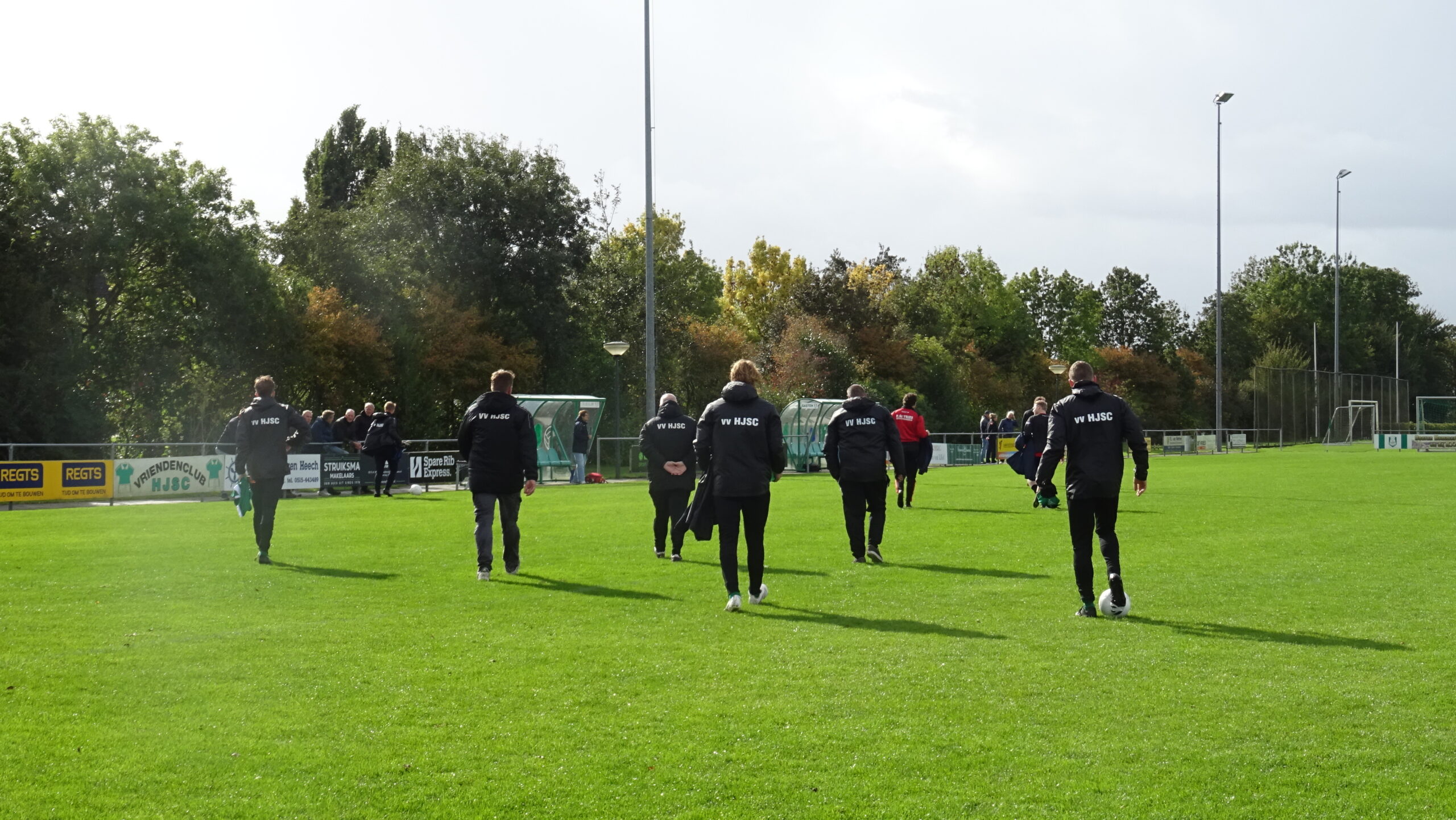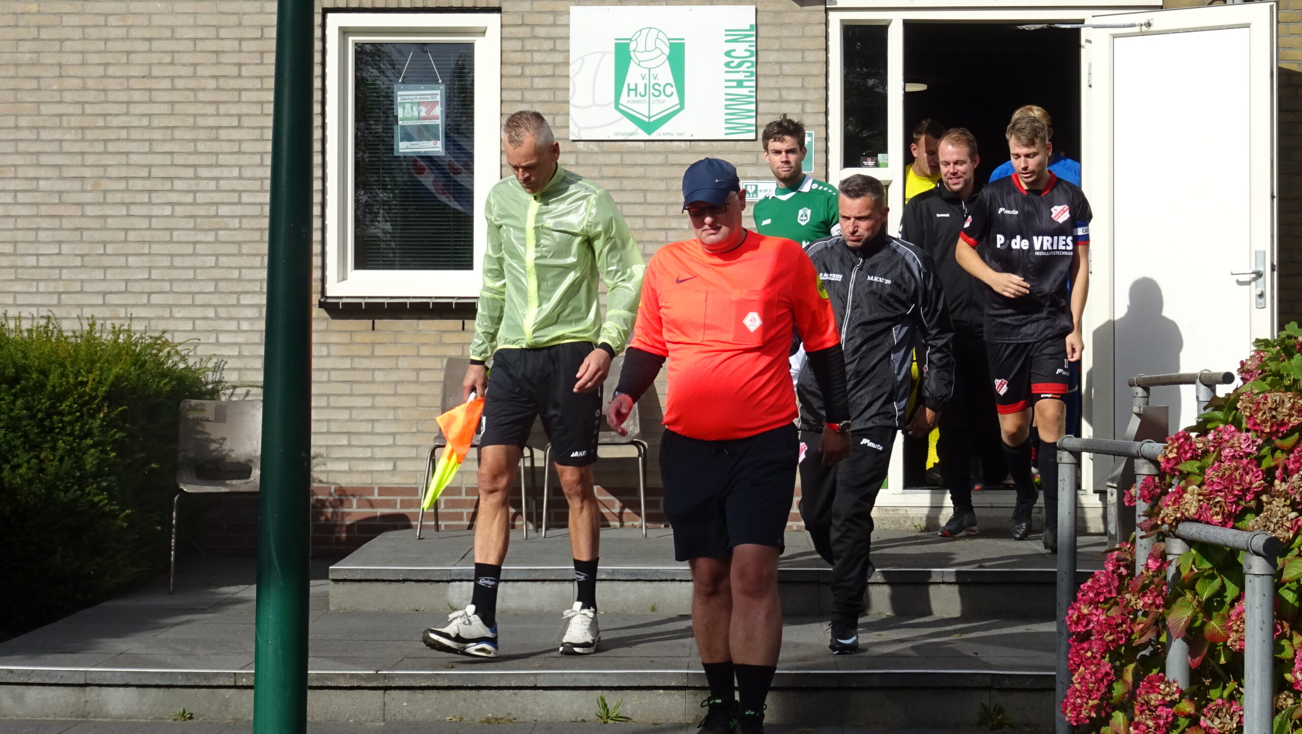 De wedstrijd kabbelde voort. Beide ploegen deden pogingen om tot score te komen maar vaak eindigde de kans al in een vroeg voorstadium. Echt in grote problemen kwam HJSC niet meer en na 97 minuten voetballen vond de leidsman het welletjes. HJSC pakt zo vroeg in het seizoen al drie hele belangrijke punten en heeft zo de schade van een week eerder grotendeels weer gerepareerd.