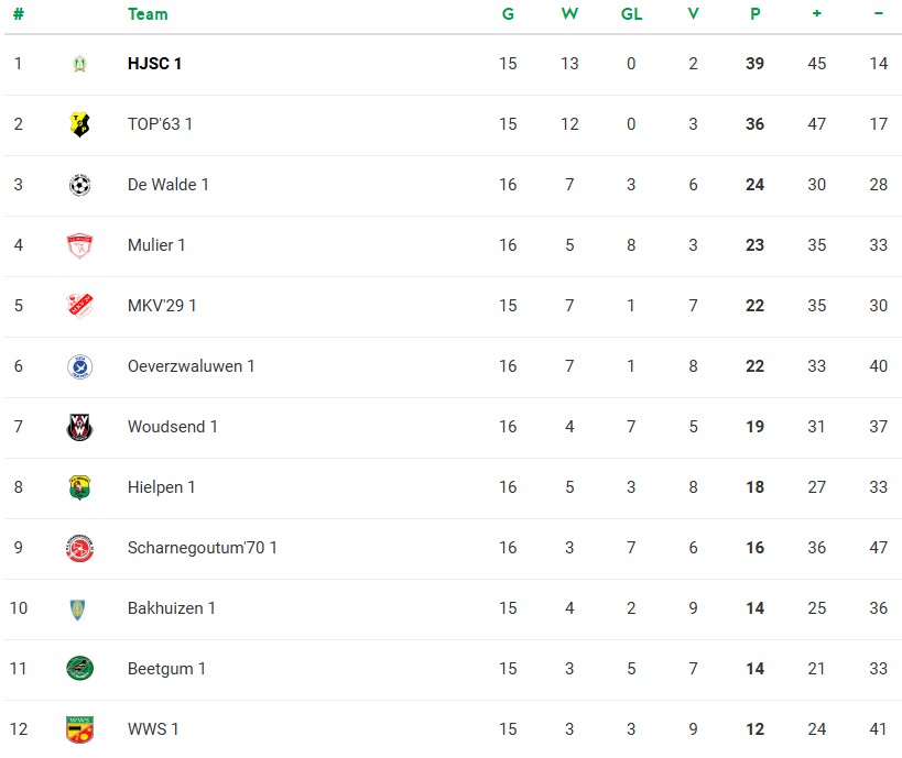 Door deze resultaten is HJSC nu de nieuwe koploper. De ploeg heeft drie punten voorsprong op achtervolger TOP’63 en beschikt bovendien over een beter doelsaldo. HJSC heeft nog zeven wedstrijden te spelen, waaronder op de voorlaatste speeldag (9 mei) de onderlinge confrontatie met TOP’63 in Oppenhuizen. Daarmee beloven het spannende weken te worden in de strijd om de bovenste plaats.