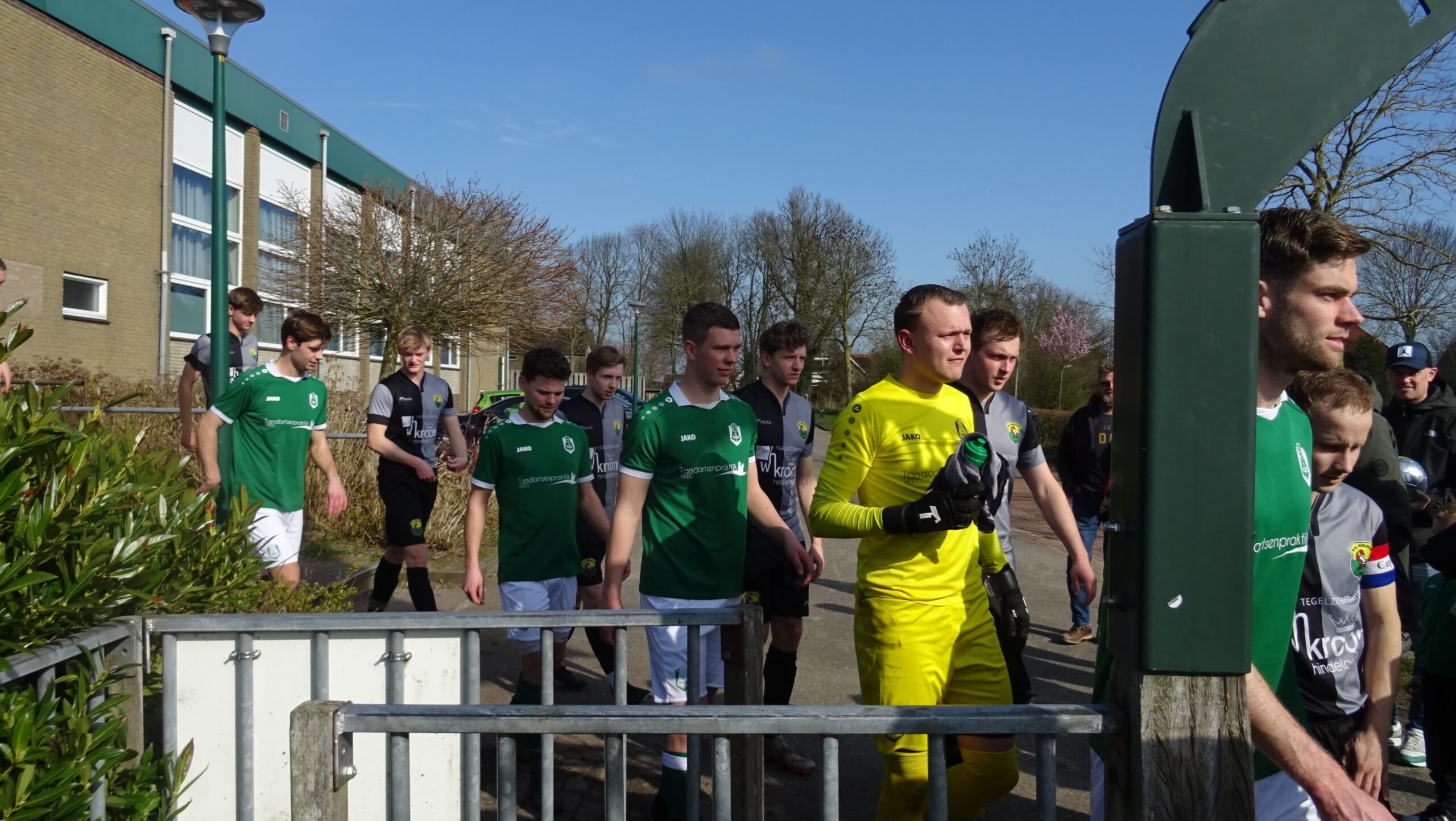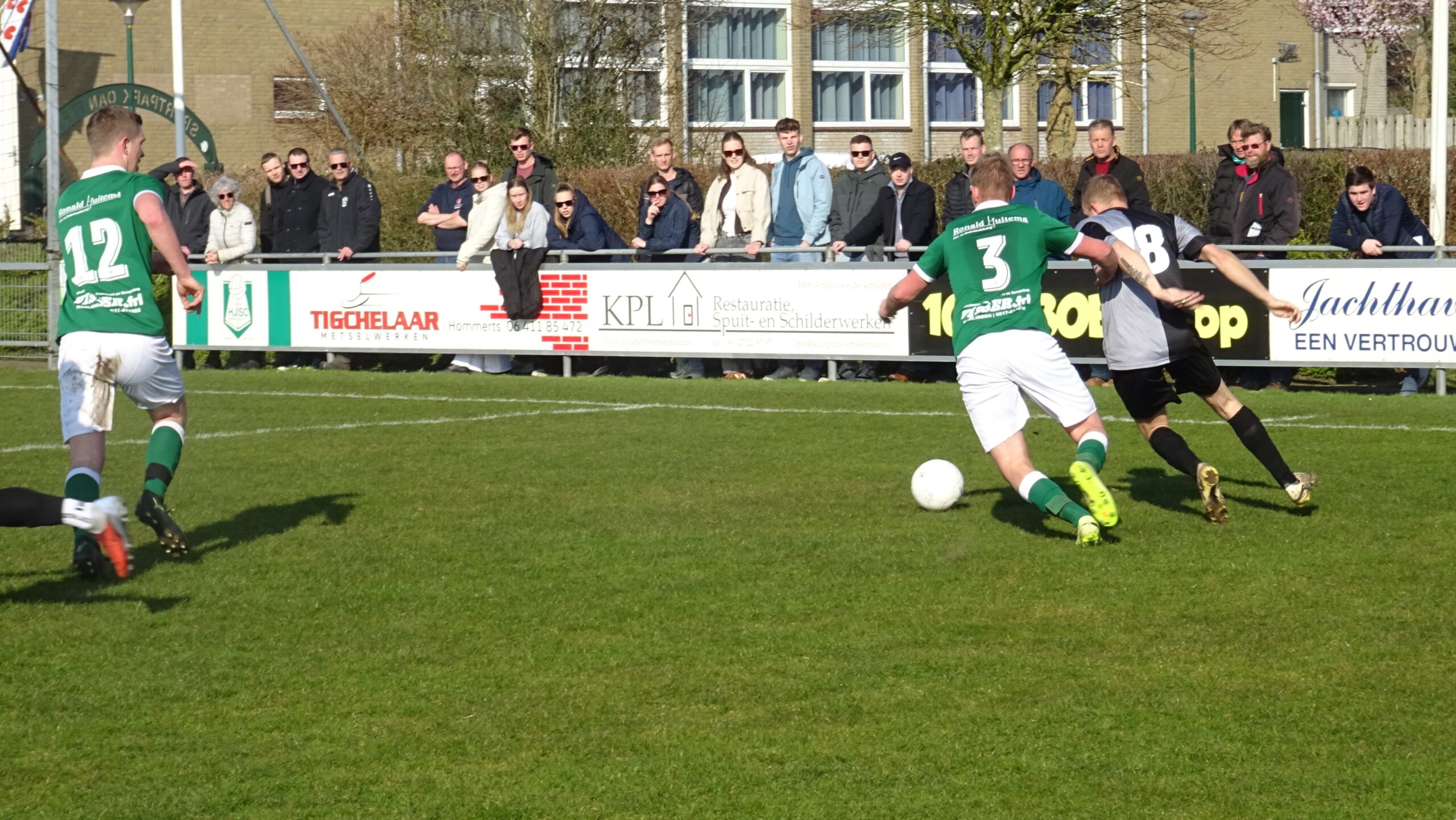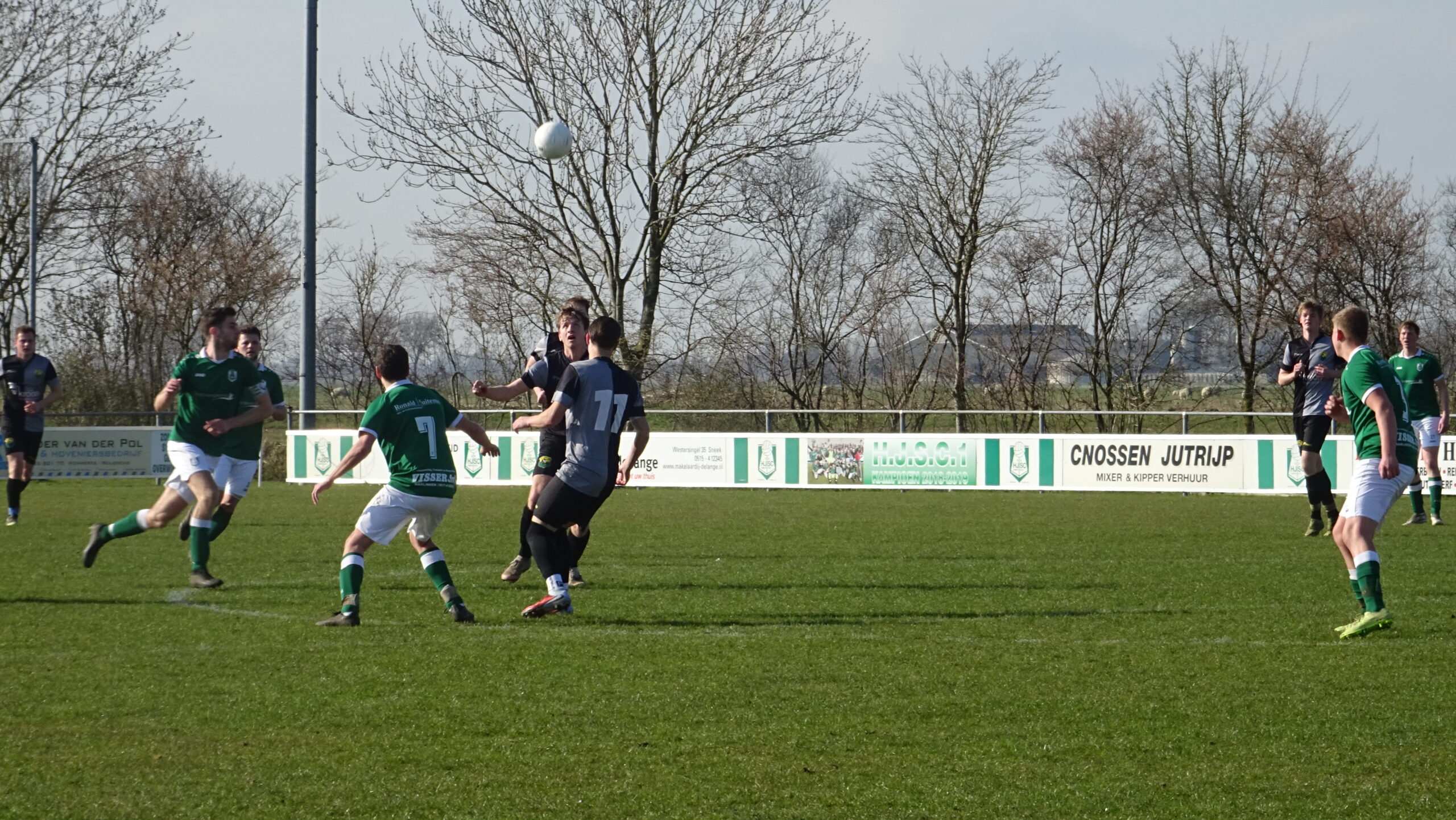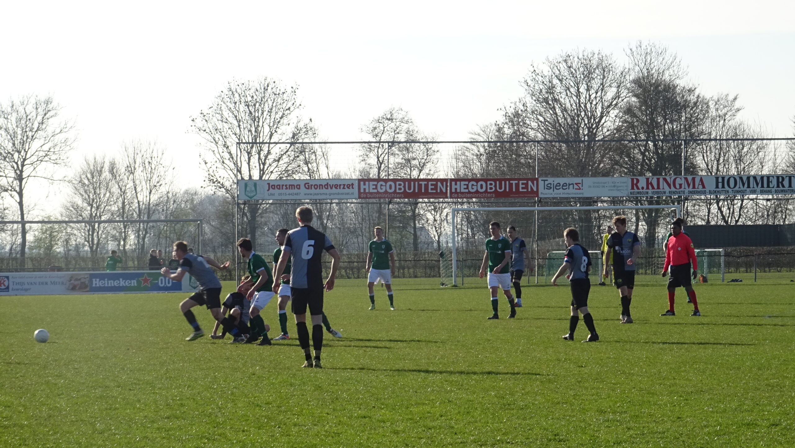De eerste echt grote kans was een één-op-één met doelman Erro Hofstra, die als winnaar uit de strijd kwam. Niet veel later moest hij echter alsnog de bal uit het net halen. Een strakke voorzet werd binnengetikt door een aanvaller van Hielpen, waardoor het na zo’n tachtig minuten 1-1 stond. HJSC leek daarmee af te stevenen op puntverlies.