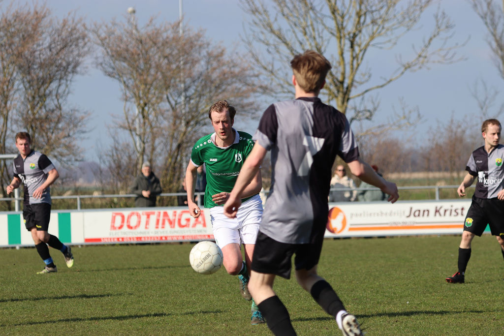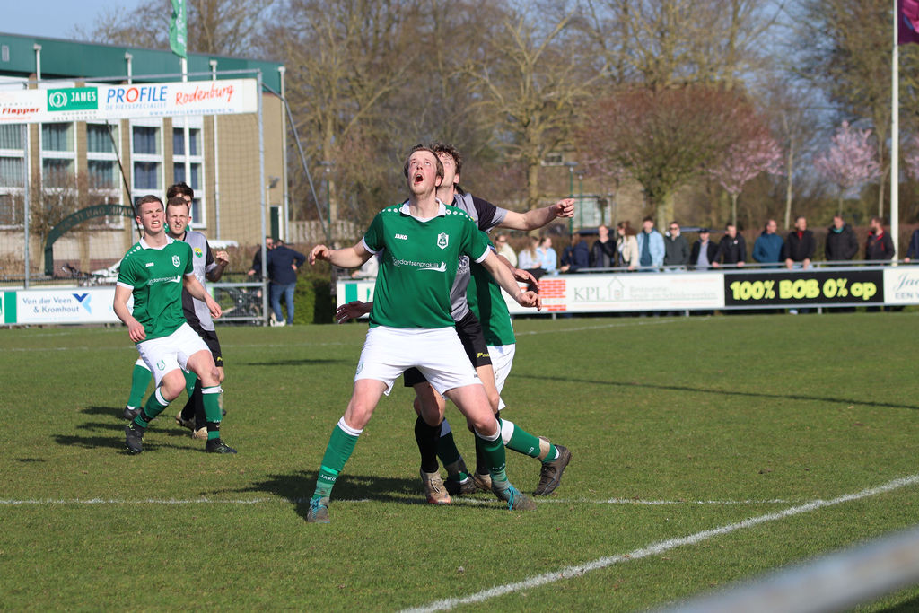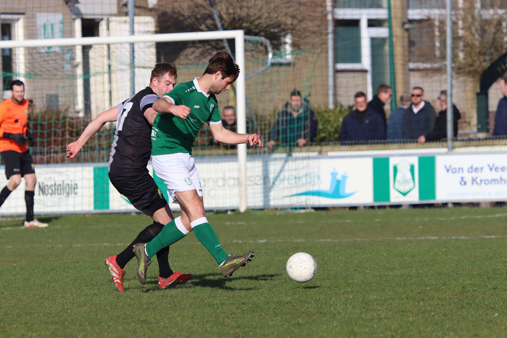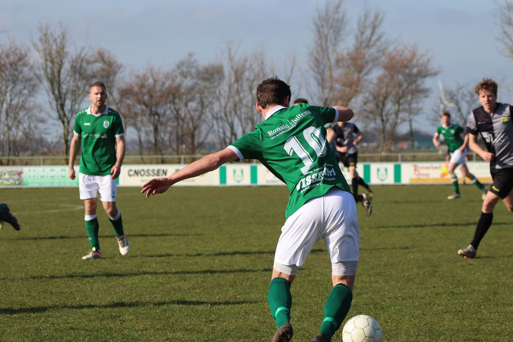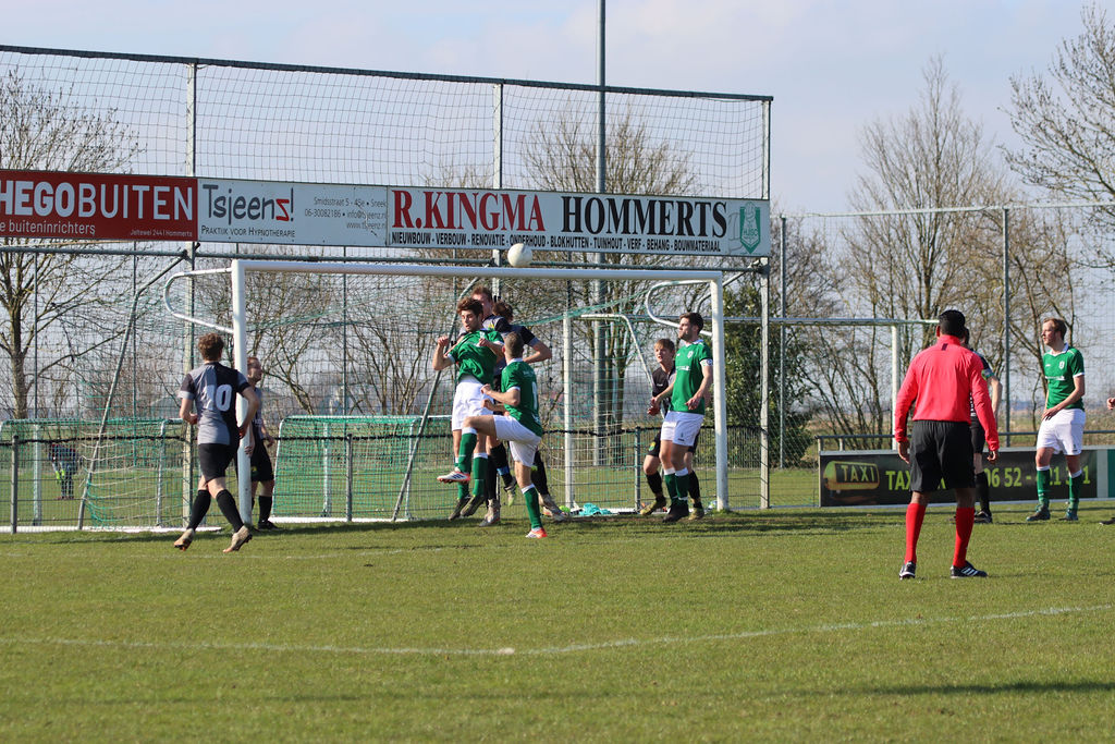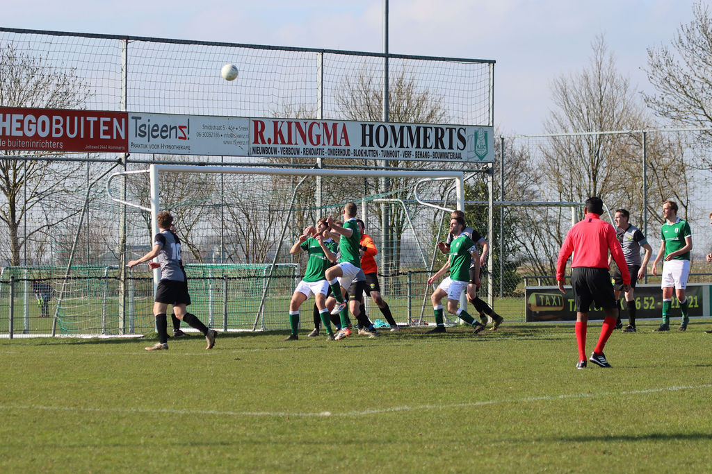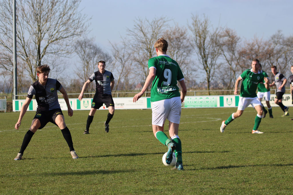 De eerste echt grote kans was een één-op-één met doelman Erro Hofstra, die als winnaar uit de strijd kwam. Niet veel later moest hij echter alsnog de bal uit het net halen. Een strakke voorzet werd binnengetikt door een aanvaller van Hielpen, waardoor het na zo’n tachtig minuten 1-1 stond. HJSC leek daarmee af te stevenen op puntverlies.