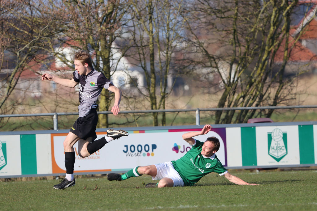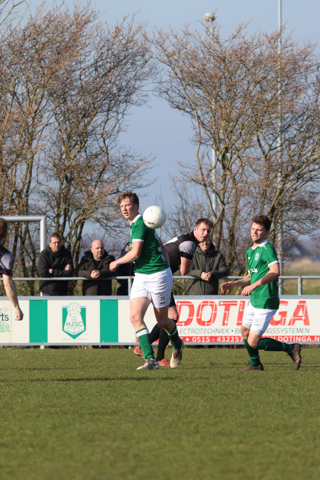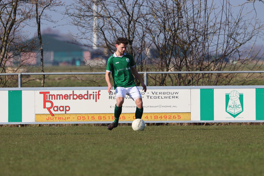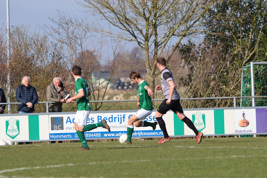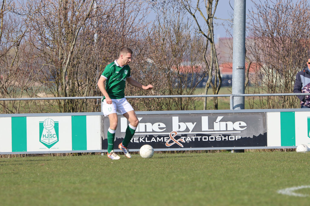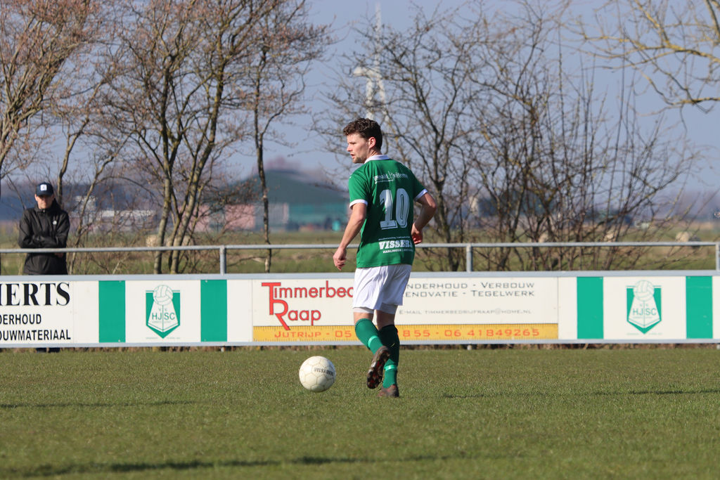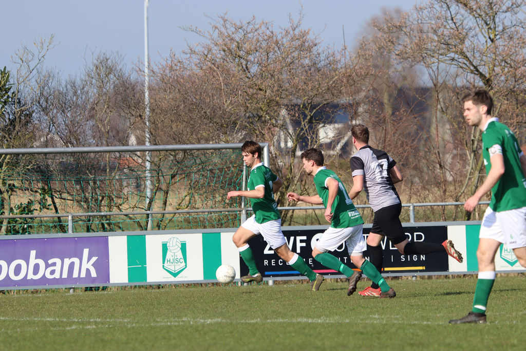 HJSC beleefde een vrij zorgeloze eerste helft, maar verzuimde de voorsprong uit te bouwen. Na rust veranderde het spelbeeld volledig: de gasten uit Hindeloopen voerden de druk op en zetten de HJSC-defensie nadrukkelijk onder druk. De ploeg van Joeri van Leeuwen kwam maar moeizaam tot kansen en zag Hielpen veel meer duels winnen op met name het middenveld. Het duurde wel een tijdje voordat Hielpen ook echte kansen wist te creëren.