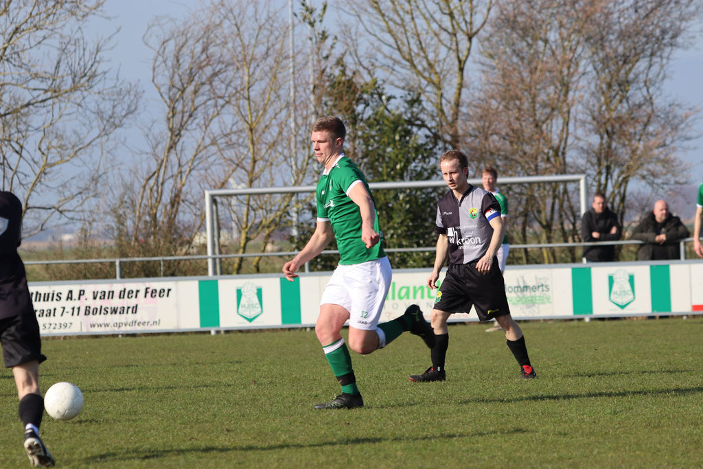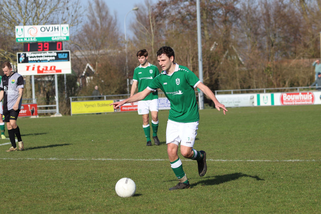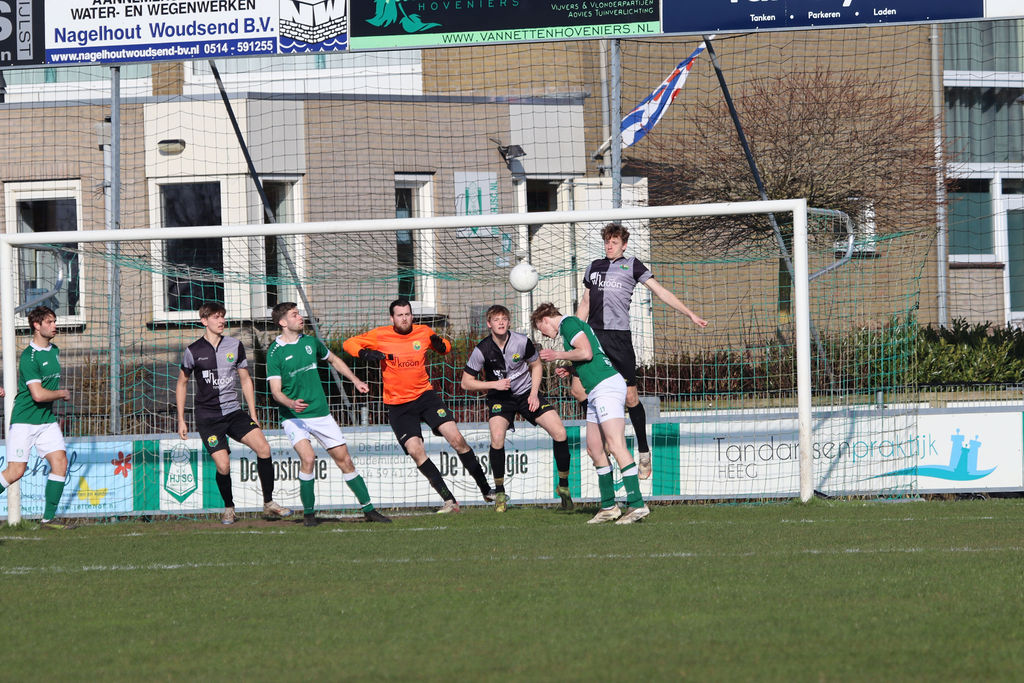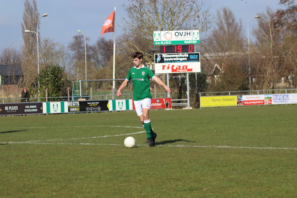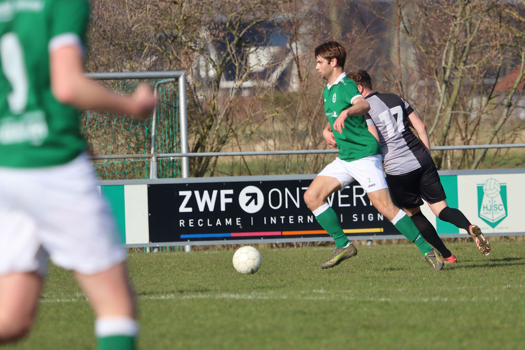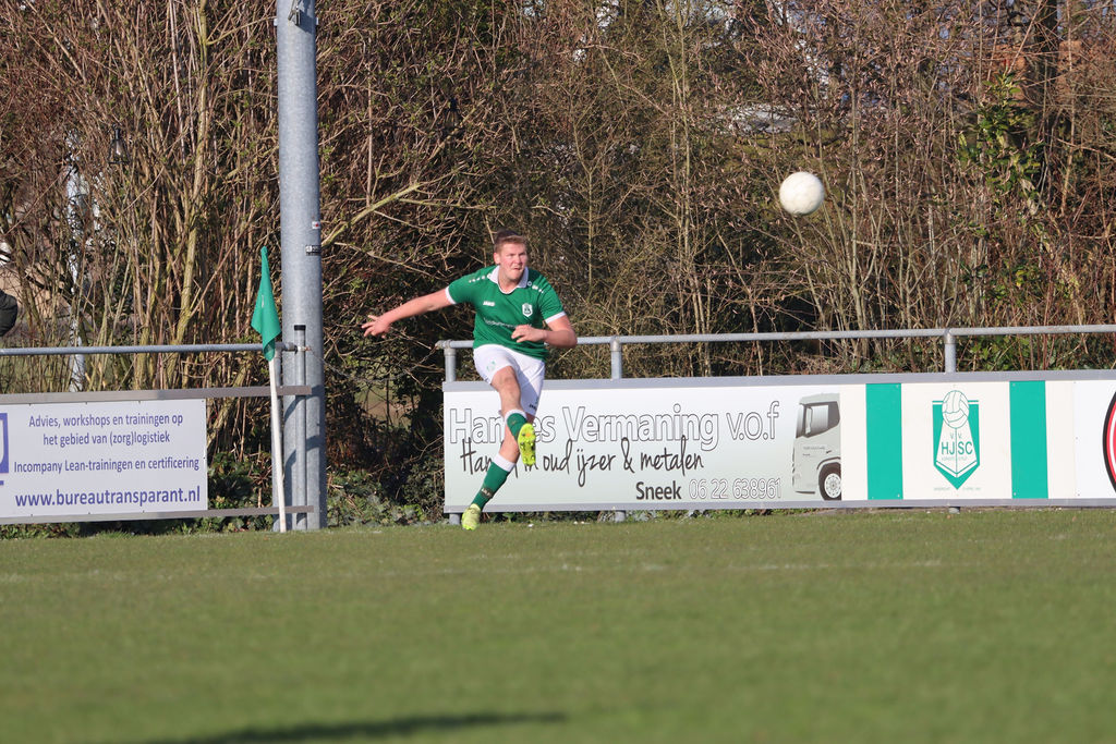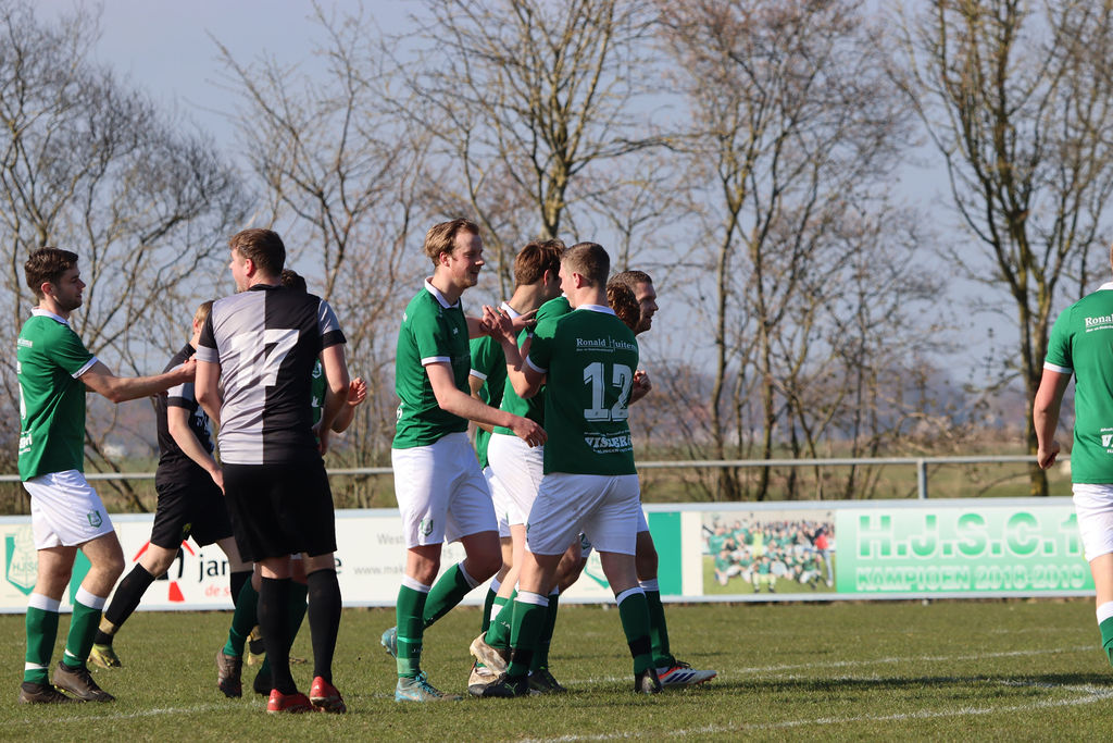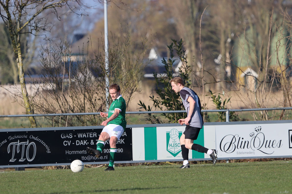 HJSC beleefde een vrij zorgeloze eerste helft, maar verzuimde de voorsprong uit te bouwen. Na rust veranderde het spelbeeld volledig: de gasten uit Hindeloopen voerden de druk op en zetten de HJSC-defensie nadrukkelijk onder druk. De ploeg van Joeri van Leeuwen kwam maar moeizaam tot kansen en zag Hielpen veel meer duels winnen op met name het middenveld. Het duurde wel een tijdje voordat Hielpen ook echte kansen wist te creëren.