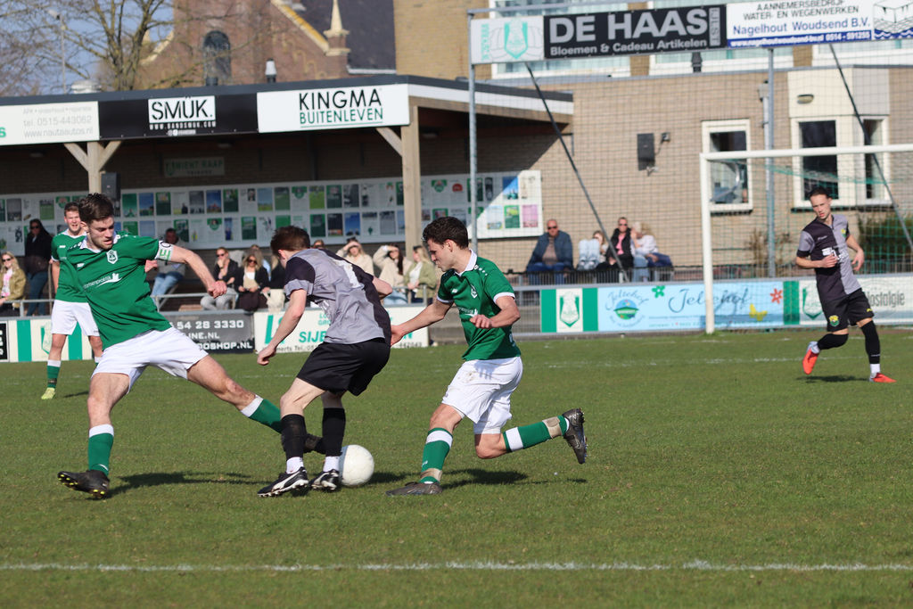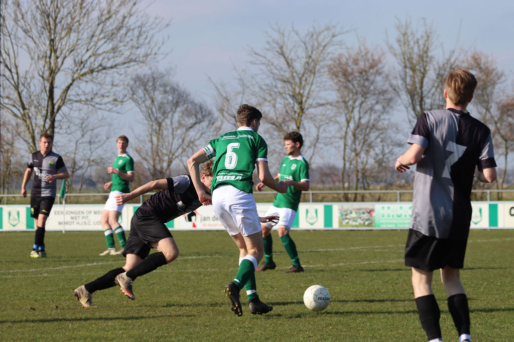 De tegentreffer leek HJSC wakker te schudden. Vrijwel direct daarna viel de 2-1. Waar de ploeg in de tweede helft lange tijd wat gezapig oogde, wist het na de gelijkmaker ineens weer een flitsende aanval op te zetten. Pieter Wiersma fungeerde als eindstation, waarna een golf van opluchting over sportpark Oan it Far trok. Toen Justin Boonstra niet veel later alleen op de doelman afging en de 3-1 binnenschoot, was de wedstrijd definitief beslist. Zo blijft HJSC zonder puntverlies in 2026 en blijft het natuurlijk koploper.