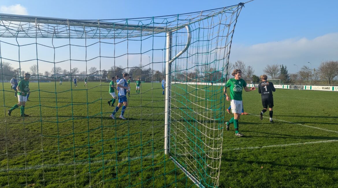 Justin weet nog eenmaal op het middenveld los te komen maar na aanmoedigende teksten uit de dugout van de gasten wordt deze aanval vriendelijk een halt toegeroepen. Na 90 minuten eindigt de soms harde maar wel sportieve wedstrijd in een gelijkspel waar de thuisploeg meer tevreden mee zal zijn dan de goedspelende, maar zichzelf niet belonende, blauw-witten.