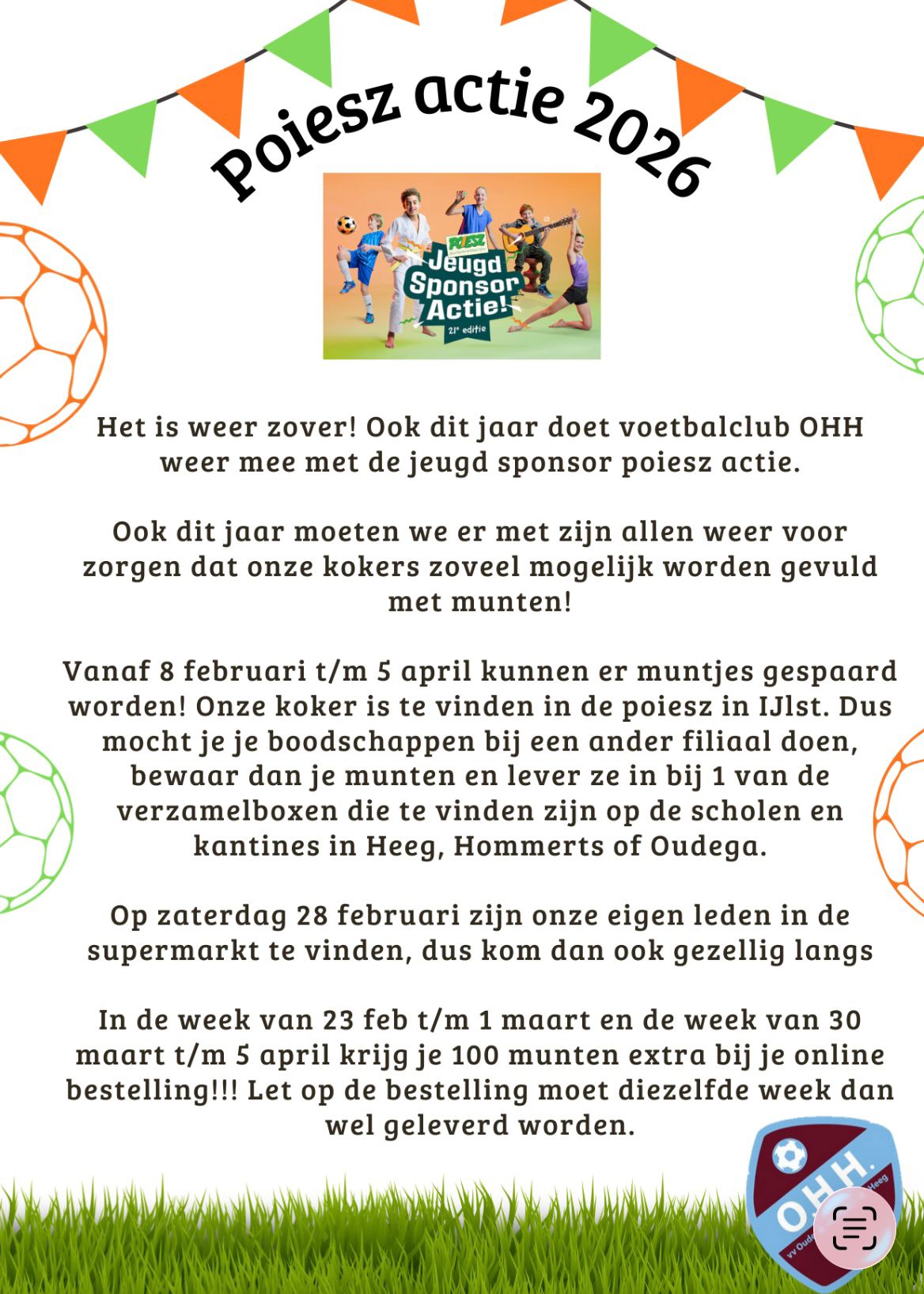 Het is weer zover! Ook dit jaar doet voetbalclub OHH opnieuw mee aan de Poiesz Jeugdsponsoractie.
