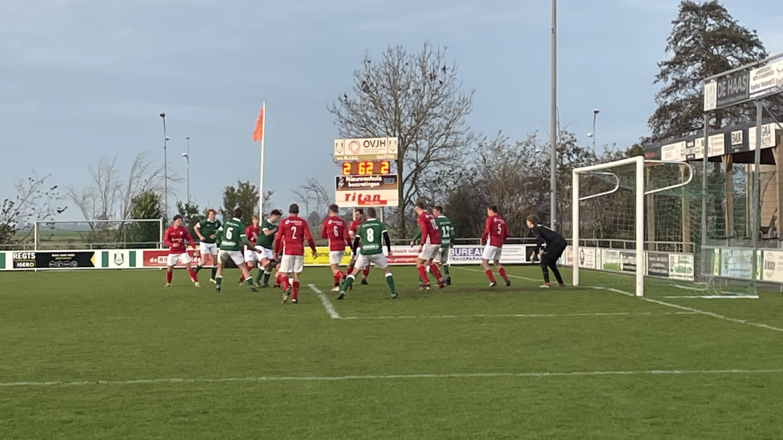 HJSC bleef op zoek naar de gelijkmaker, maar veel leek er niet in te zitten. Totdat Ramon Raap vlak voor rust ineens vrij voor de keeper opdook en koeltjes de 2-2 binnenschoot. Een prettig moment om weer langszij te komen.