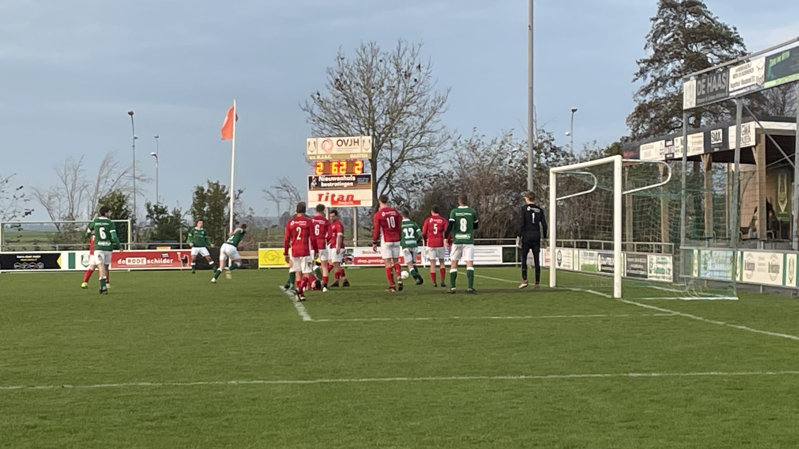 Terecht, want Mulier bleef geduldig en stoïcijns druk zetten op de laatste linie van HJSC. Hoewel grote kansen uitbleven, leverde een onnodige overtreding een vrije trap op randje zestien op. Die werd feilloos binnengeschoten: 1-2.