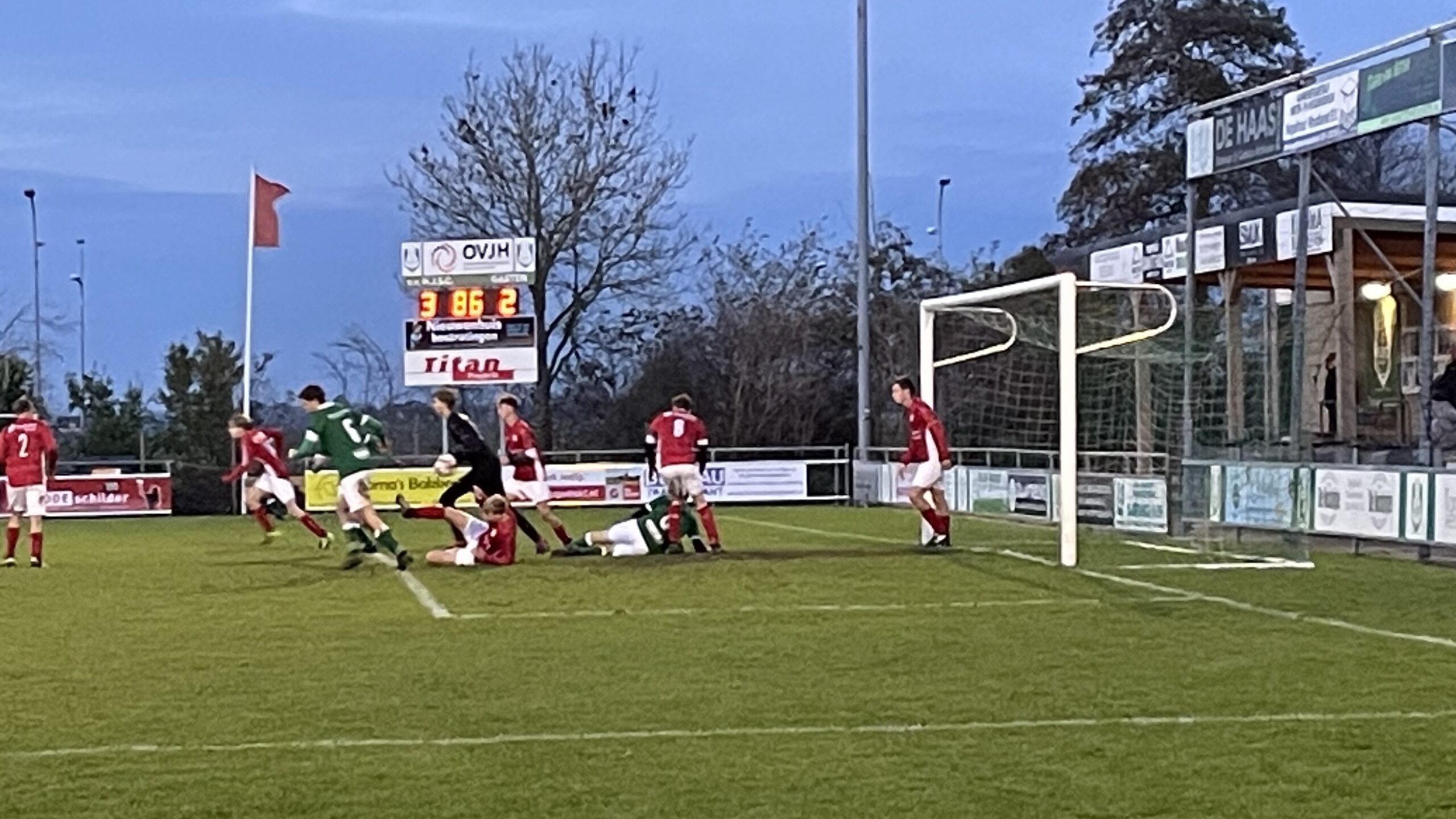 Na rust was het wedstrijdbeeld compleet anders. HJSC kwam nauwelijks nog in de problemen en ging vol op jacht naar de voorsprong. Doelman Erro Hofstra hoefde alleen in beweging te komen om warm te blijven. Toch duurde het lang voordat de 3-2 viel: het spel was rommelig, er waren veel klutsmomenten en de vele voorzetten leverden geen doelpunten op.