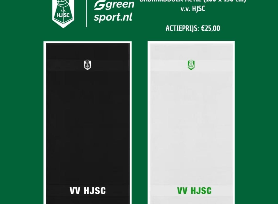 Samen met kledingsponsor GreenSports organiseert HJSC een tijdelijke actie. Voor slechts €25 ontvang je een unieke badhanddoek. Deze actie is tijdelijk: na afloop zijn de badhanddoeken niet meer verkrijgbaar. Wees er dus snel bij!
